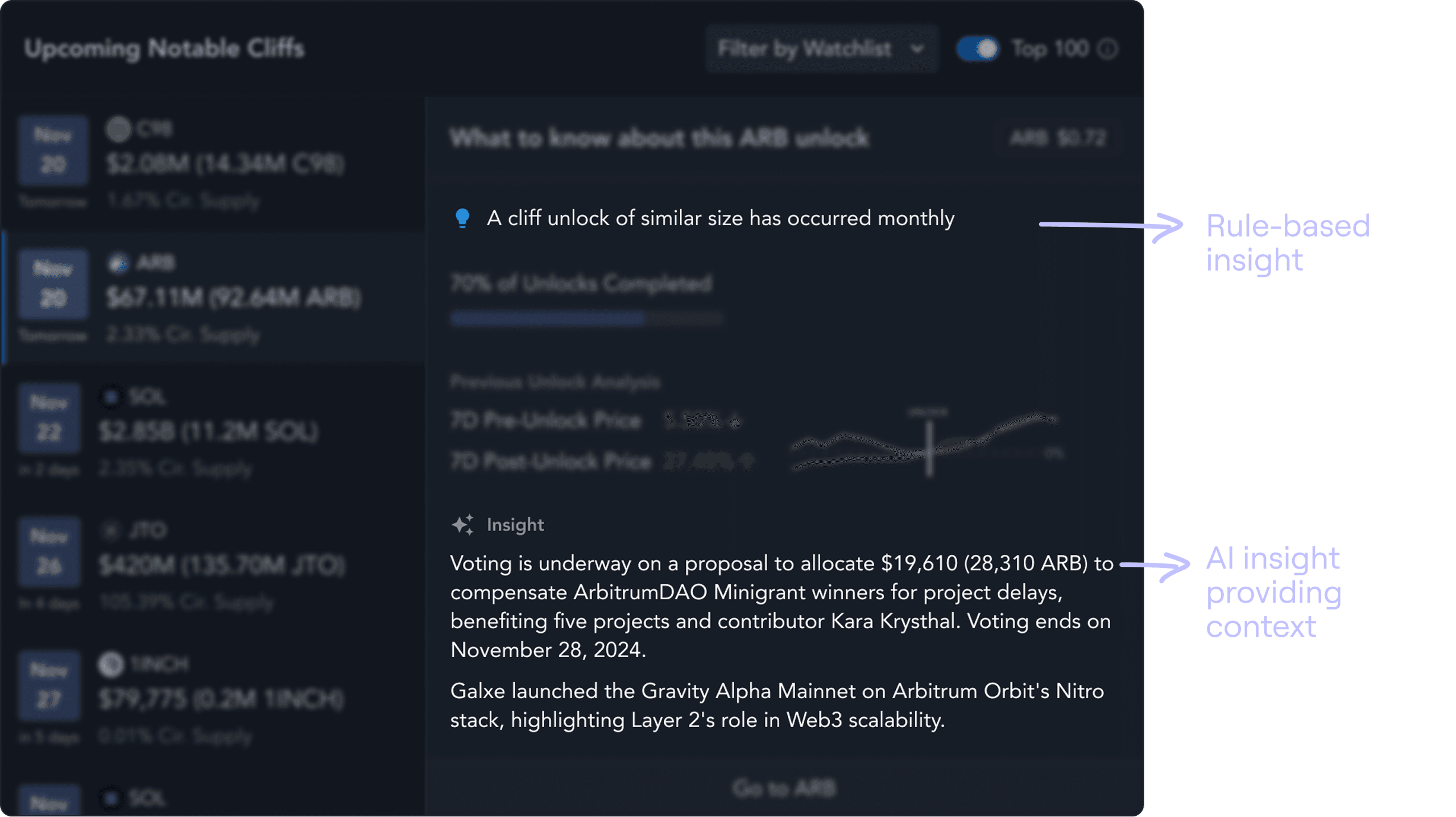 I redesigned the Token Unlocks dashboard to reduce time-to-value and increase user engagement, establishing it as the leading product in the market.
